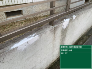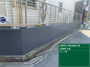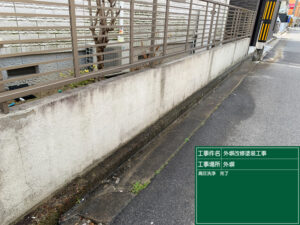 広島市東区牛田にて擁壁のジョリパット塗り替え工事を行なってきました。 ジョリパットに通常の塗料を塗り塗膜を作ってしまうと膨れや剥がれの原因になるので 今回は、関西ペイントの「デコラフレッシュ」を施工しました。