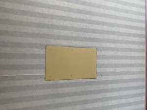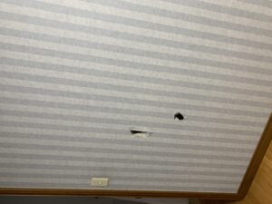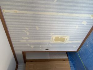 チビちゃんが開けてしまった穴をボード補修。