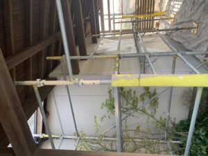 階段ケアゲ塗装。築30年 民家塗り替え工事ケアゲを白くするだけでかなり明るくなります😊使用材料:ミッチャクロン・エバーロック・和信艶消しクリアー