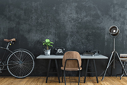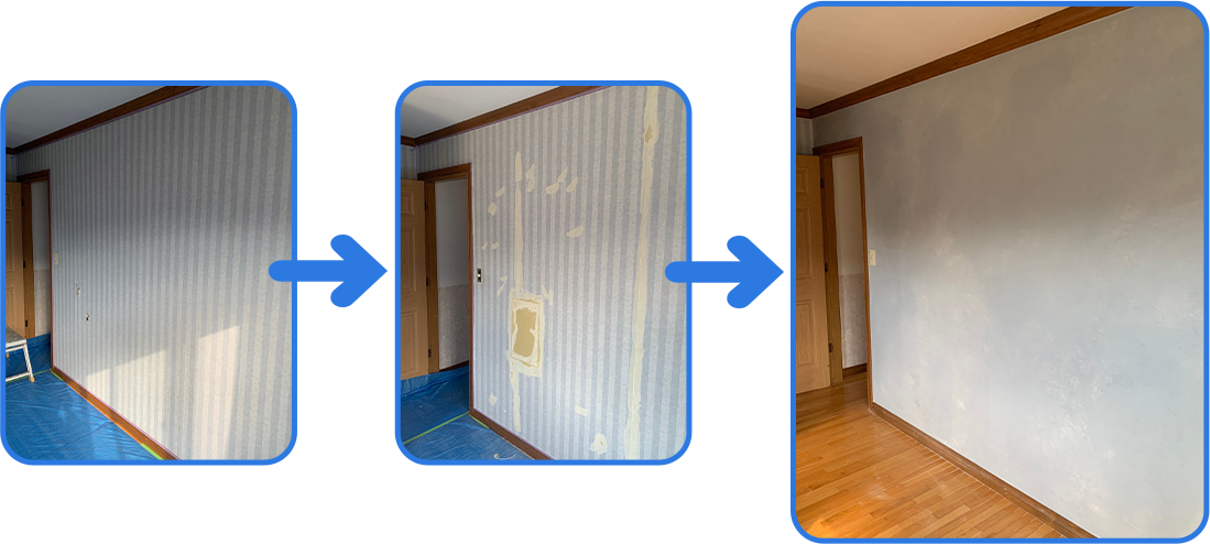 クロスをコンクリート調に仕上げ、壁の補修も併せて施工しています。
