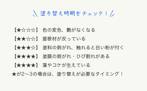 外壁材や屋根材を守ることが、住まいの安全を維持することにも繋がりますので、約10年を目安とした塗り替えがオススメ。