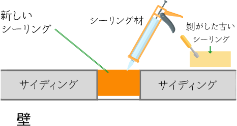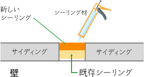 ※打ち替えは古いシーリング材をカッターなどで撤去し、新しいシーリング材を充填する工事で耐久性が高く、長持ちします。打ち増しは、古いシーリング材の上に新しいシーリング材を塗り重ねる工事で工期が短く、費用が安いです。施工場所によって異なりますので、最適な工法を提案します。